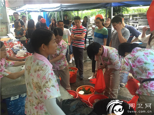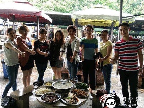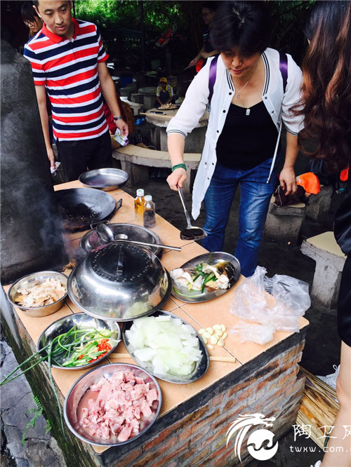 中午的野炊大赛,全部人分为了五组,每组8-10人不等,性别结构不等。前期准备中还未看出某些人的手艺,真正到了做菜的时候,各自小组的厨神脱颖而出,在简陋的调料、配料的基础上,每组都至少交出了五道作品。可谓是,色香味俱全。在互相品菜的过程中,各组小伙伴都有自己作品胜出。也是作为此次比赛中拉票的重要一环。