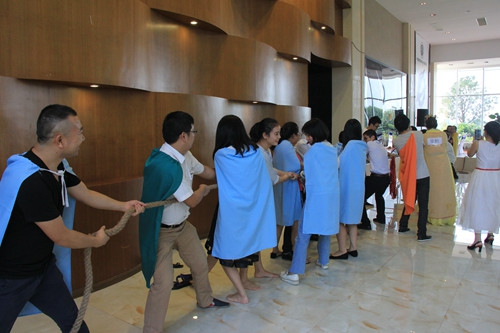 据悉,本届卫浴武林大会,由武当派、少林派、华山派、逍遥派、崆峒派等六大门派进行文韬武略、智勇双全比试,并采取积分制,最高分者将直接晋级最后的王中王。节目开场由中洁网佛山团队带来一场中洁版掌柜、账房、厨子、跑堂、店小二、车夫等角色cosplay。在接下来的六大门派比拼中,卫浴英雄好汉使出“洪荒之力”。成语接龙,大家开动脑筋,集思广益,体会着接成语的乐趣。掰手腕比赛,各大门派派出武林精英,轮番上演力量的较量。现场气氛浓厚,时不时传来欢声笑语。