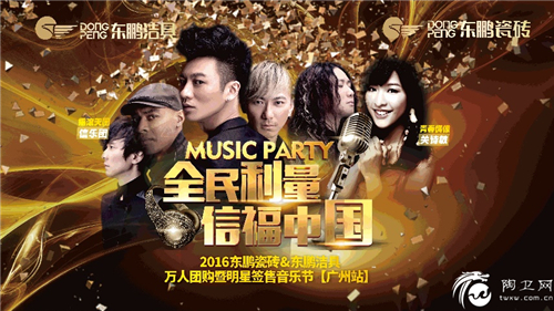 “全民利量 信福中国”——9月24日摇滚天团信乐团、中国好声音关诗敏亲临助阵东鹏瓷砖、东鹏洁具万人团购明星音乐节。即日起至24号东鹏全场低至2折起,劲爆特价让利高达80%!参与本次活动,可以免费抽取7000元抵用券、信乐团亲笔签名CD、家电豪礼,选东鹏-做公益,和信乐团面对面,除此之外,现场还有循环抽奖、丰厚大奖等你哦。摇滚就要听现场,一起重温经典摇滚歌曲,唱响青春!购狂野,够激情,快来东鹏约惠吧!