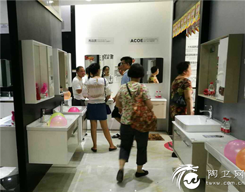 雅颂卫浴浴室柜精美的设计,靓丽的款式成为开业当天最吸引眼球的产品。