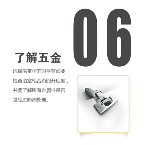 五金合页在浴室柜中也充当了非常重要的角色,直接决定了浴室柜的开合顺滑。心海伽蓝采用的是意大利顶高铰链和静音顺滑导轨,开合寂静无声。