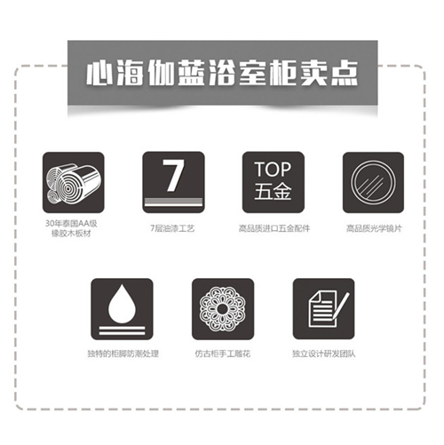 材质是浴室柜质量的根本,选择实木浴室柜,高端大气上档次。心海伽蓝浴室柜均采用30年AA级橡胶木板材,是浴室柜中的精品之选。