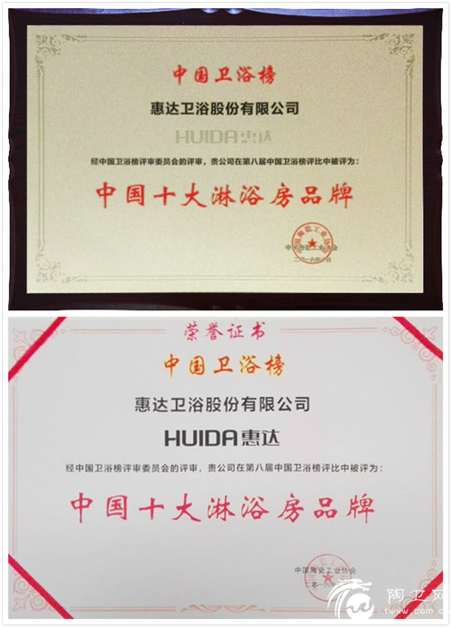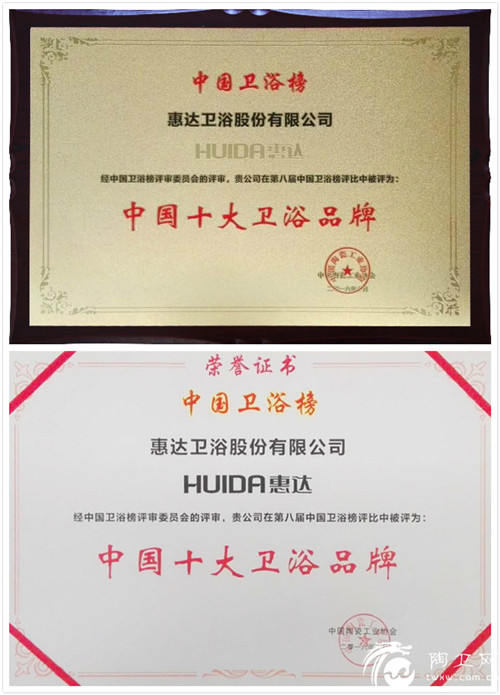 10月13日,由中国陶瓷工业协会,陶卫网,厨卫资讯联合主办的第八届中国卫浴榜颁奖典礼在佛山隆重举行,惠达卫浴再次榜上有名,荣获“中国卫浴十大品牌”、“中国十大淋浴房品牌”两项重量级大奖,强大的品牌实力彰显无疑。