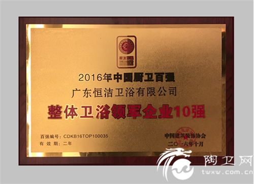 「整体卫浴领军企业十强」,彰显恒洁品质