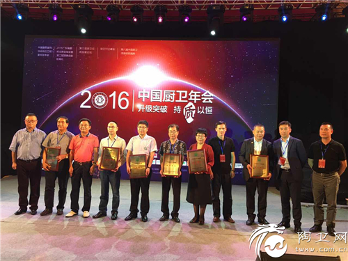霍成基董事长(右一)为中国厨卫产业联盟成员单位颁发奖牌