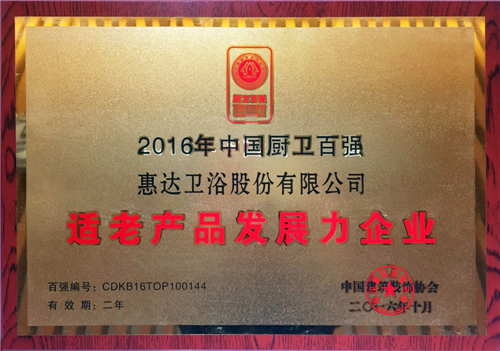 10月27日,以“升级突破,持‘质’以恒”为主题的2016年中国厨卫年会在广东中山隆重举行,在会议期间举办的第八届中国厨卫百强颁奖典礼上,惠达卫浴荣获“整体卫浴领军企业十强”和“适老产品发展力企业”两大荣誉称号,再次彰显了强大的品牌实力。
