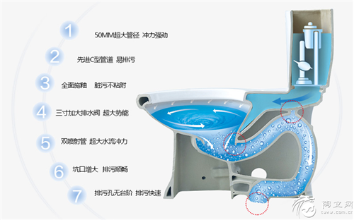 独有专利C型管道+50MM超大管径,冲水强劲,轻松排污不堵塞,不尴尬!!