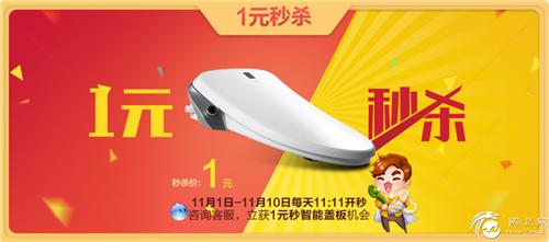 11月1—11日每天上午11:11,1元秒杀价值2899元智能盖板!科技感十足的造型,一键旋钮便捷易用,温水清洗即用即热,多功能提升健康生活质量。现在进店咨询客服即可领取专属秒杀链接,调好闹钟,坐等人品+手速爆发!
