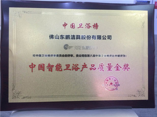 10月13日,由中国陶瓷工业协会、陶卫网、厨卫资讯联合主办的第十届中国卫浴行业高峰论坛暨第八届中国卫浴榜在中国陶瓷总部基地隆重举行。中国卫浴领先品牌东鹏洁具再一次荣获年度“中国智能卫浴产品质量金奖”。
