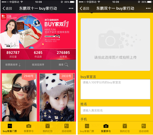 今年双十一,东鹏洁具做活动,就要来点大的,换个新方式,一言不合,我们就送门票~~11张上海迪士尼家庭套票任你抢,不要怀疑,真的免费送!!!参加微信平台“buy家主妇”大评选,上传美照收集支持投票,按排名前11名美丽主妇获奖,还有两天11月11日正式公布获奖名单。截至目前为止,评选活动,已积累89万人关注!