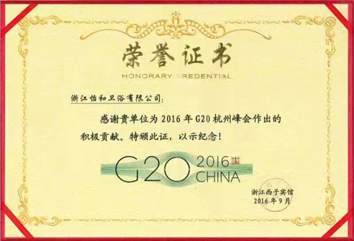 怡和卫浴智能马桶盖被2016年G20杭州峰会国外首脑下榻酒店被选择为指定产品,9月份被授予“G20杭州峰会积极贡献奖”的称号。10月份怡和卫浴被国字号行业协会——中国陶瓷工业协会授予“中国十大智能卫浴品牌”称号。怡和卫浴是国内专业生产智能马桶品牌的一流品牌。