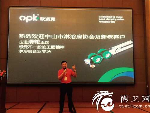各位会员嘉宾在中山市小榄镇假日酒店会议厅参加了会议交流,现场座无虚席。在会议现场,欧派克总经理许超先生上台与嘉宾们进行了交流,他认为自己在欧派克公司更多的是担任技术总监的角色,并从技术的角度讲述了其公司产品的生产与研发。许超先生表示,在欧派克的发展中,生产技术起着至关重要的作用,欧派克和许多淋浴房企业都会进行一些技术交流,欧派克作为家居滑轮全系列系统解决方案提供者,坚持不忘初心,专注做好滑轮。