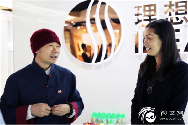 理想卫浴总经理危五祥与百利玛建材公司副总经理刘志容女士交流