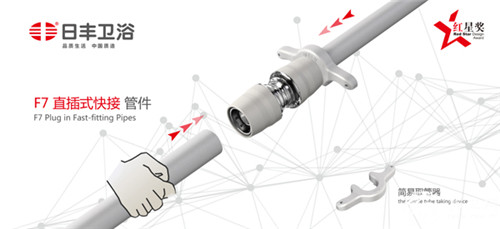 日丰集团根据人们平时房屋进水管道安装繁琐、复杂等状况,研发出F7直插式快接管件,彻底解决安装复杂问题。F7直插式快接管件虽然是管道产品,但它的外形不失“贵族”气质,流畅的外形,错落有致的线条,赋予了F7直插式快接管件不一样的视觉冲击。F7直插式快接管件可以徒手安装,而且通过简易取管器,将管材与管件快速拆分,重复使用,实现快捷、环保、实用的理念。