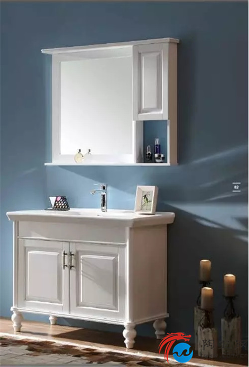 惠达HDFL6106B-08浴室柜整体采用了简欧式风格常用的哑白色 ,柜身上的主柜方形门板,圆柱形陶瓷加锌合金拉手,葫芦造型柜腿等多种细节互相映衬,最终展示出了简欧风格极致搭配的和谐之美。