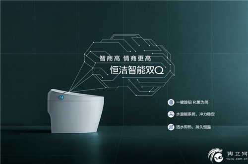 除了方便省心的一键旋钮技术,水漩能技术、活水即热技术也是恒洁智能双Q马桶“智商高,情商更高”的体现,可以说,随着以Q8为代表的恒洁智能双Q系列马桶的上市,智能马桶市场已经进入了“智商高,情商更高”的新时代。