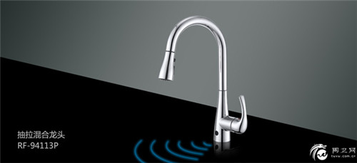 抽拉混合龙头RF-94113P开发了感应功能,带红外线感应,在抽拉过程中自动开启出水功能。