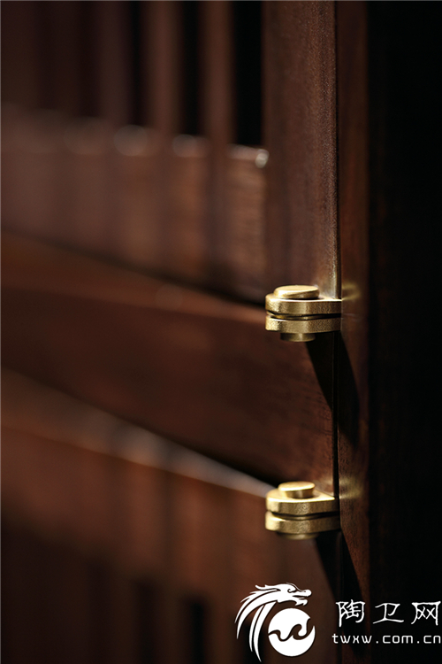 铜制的拉手,常见于传统中式家具,纯铜与原木的配搭,温润中略带雍容雅致,实为设计的点睛。疏影也自当保留这种手法,笔直的线条,新颖醒目,厚度恰好,适合母指食指信手拈来,轻盈地把门打开。