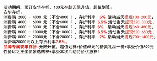 一、【团购风暴,安华存折超值提现】活动期间顾客预订安华存折,预约享受活动所有优惠,免费领取价值68元工厂豪礼一份;