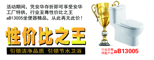 三、【工厂价感恩回馈,行业至尊性价比之王】 活动期间,凭安华存折即可享受安华工厂特供优惠,抢购行业至尊性价比之王aB13005坐便器精品,从此再无此价!