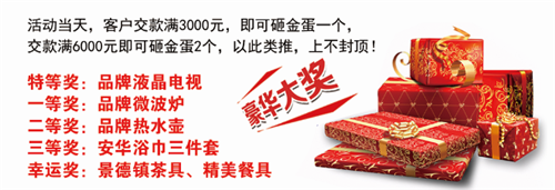 四、【购物砸金蛋,家电任您抽】 活动期间,交款满3000元,即可砸金蛋一个,满6000元即可砸金蛋2个,以此类推,上不封顶。