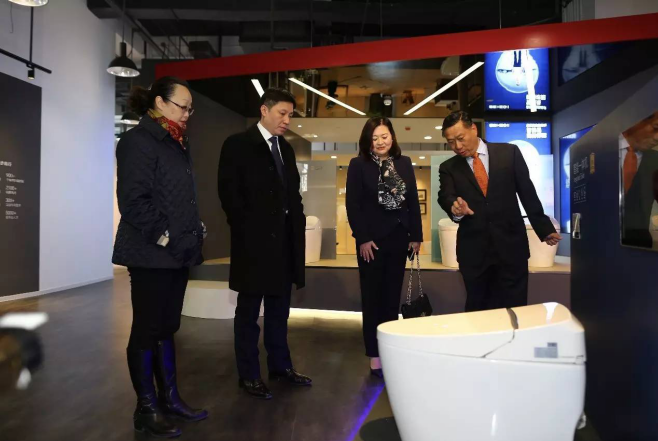 上海静安区周海鹰副区长、市北高新园区周群董事长参观上海恒洁大厦新展厅