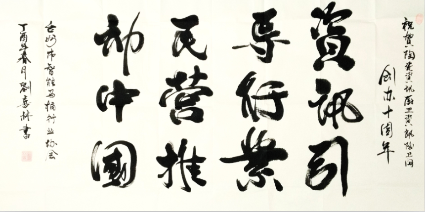 2017年4月6日是陶瓷资讯、厨卫资讯、陶卫网创办10周年的日子,台州市智能马桶行业协会副秘书长刘喜林亲自书写“资讯引导行业,民营推动中国”贺语祝贺陶瓷资讯、厨卫资讯、陶卫网10岁生日。