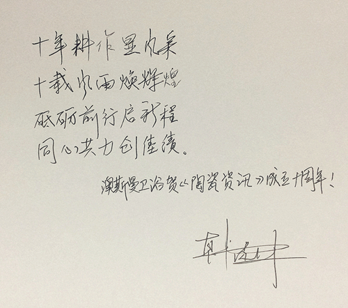 2017年4月6日,陶瓷资讯、厨卫资讯、陶卫网创办10周年。为此,澳斯曼卫浴营销总经理韩圆林写澳斯曼自创诗祝贺陶瓷资讯、厨卫资讯、陶卫网10岁生日。