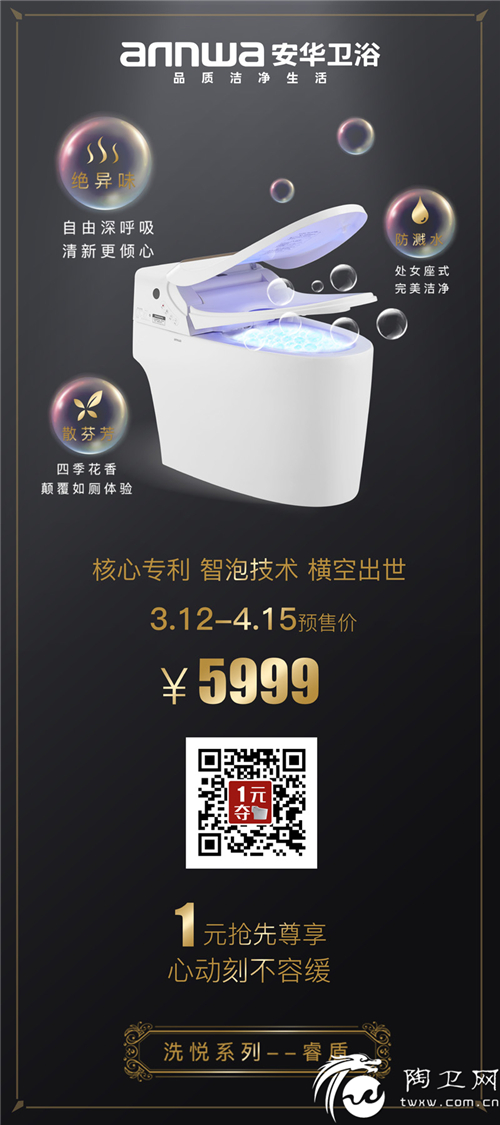 安华卫浴新品“睿盾”智能坐便器,别致的外观设计荣获“红棉中国设计奖”,其结合了大自然优点,以亲近自然的方式,完美诠释“舒畅”。