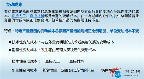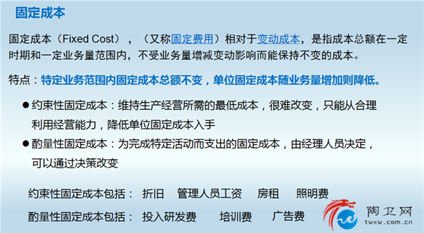 随着课程的进阶,课程进入了初中阶段。宋总带来了成本的概念。成本原来分为固定成本和变动成本。固定成本是指成本总额在一定时期和一定业务量范围内,不受业务量增减变动影响而能保持不变的成本。变动成本是指那些成本的总发生额在相关范围内随着业务量的变动而呈线性变动的成本。