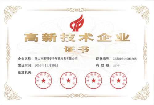 但惹人关注的是,我国高新技术企业中竟出现了不少卫浴品牌,毕竟高新技术企业是难得的知识密集、技术密集性经济实体,可见“马桶盖”将不再是国民难以启齿的事儿。其中值得一提的品牌是近年频频获得认可的中外合资企业:安华卫浴。