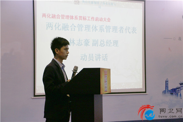 随后,两化融合管理体系管理者代表林志豪先生发表讲话:作为赢伽公司本次贯标实施负责人,他将以身作则,带领公司全体员工,认真完成贯标各项工作,带领各部门按时、保质保量完成本部门贯标工作的完成。同时积极引导全体员工学习和参与贯标工作,使两化融合管理体系的标准和评估规范深入人心,切实落地。赢伽将按照管理体系的要求,认真查找存在的问题和差距,制定和完善适合企业发展的体系文件,争取通过全面实施两化融合贯标工作,赢伽公司能够快人一步,打造信息化环境下的新型能力,获取自身的可持续发展竞争优势,成为国内乃至于国际上都享有声誉的优质企业!
