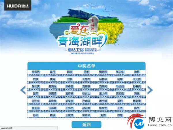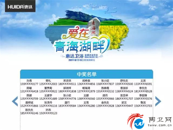 恭喜以上幸运儿们,惠达卫浴也希望借此机会进一步为消费者提供更好的卫浴沐浴水文化体验。后续惠达卫浴工作人员将与抽出的幸运体验大使取得联系,请保持手机通畅,让我们青海湖畔见!