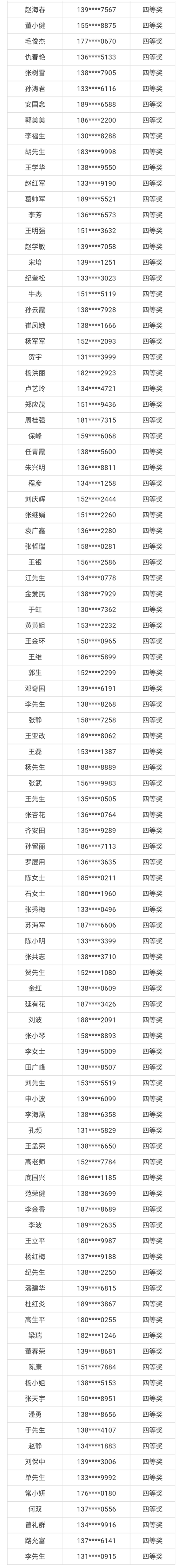 以下为所有获奖者名单,大家赶快对号入座,一起分享这份幸运与喜悦吧!
