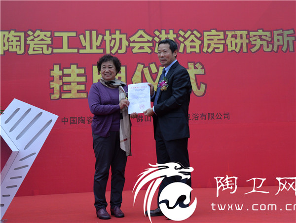 在正式揭牌仪式上,,中国陶瓷工业协会常务副理事长傅维杰宣读了《关于同意成立“中国陶瓷工业协会淋浴房研究所”的决定》,与会领导嘉宾共同为“中国陶瓷工业协会淋浴房研究所”进行了揭牌。