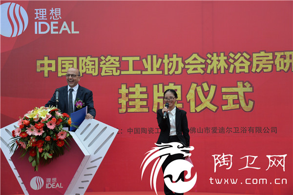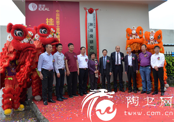 19日下午,中国陶瓷工业协会常务副理事长傅维杰、佛山市爱迪尔卫浴有限公司董事长危五祥、佛山市高明区经济和科技促进局副局长邓日昌、原佛山市顺德区质监局局长李春江、中国陶瓷工业协会秘书长侯文全、佛山市爱迪尔卫浴有限公司欧洲设计中心代表大伯先生、佛山市高明区杨和镇党委委员关广翔、中国陶瓷工业协会营销分会专职副会长于枫、中国建材市场协会卫浴分会、佛山市卫浴洁具行业协会秘书长刘文贵、佛山市质量管理协会秘书长喻永健、中国陶瓷工业协会智能卫浴分会执行秘书长喻镇荣等相关领导及众多行业大咖嘉宾、各大新闻媒体记者朋友逾200人共同见证了淋浴房研究所的揭牌成立。