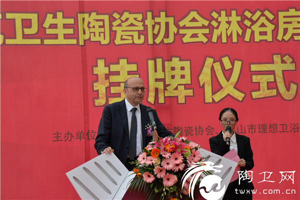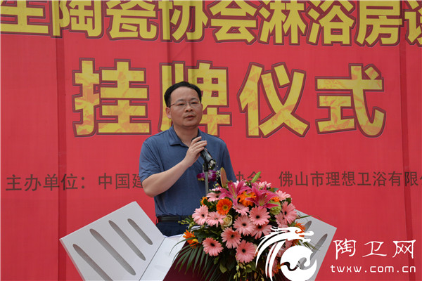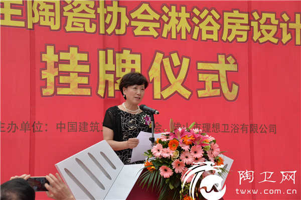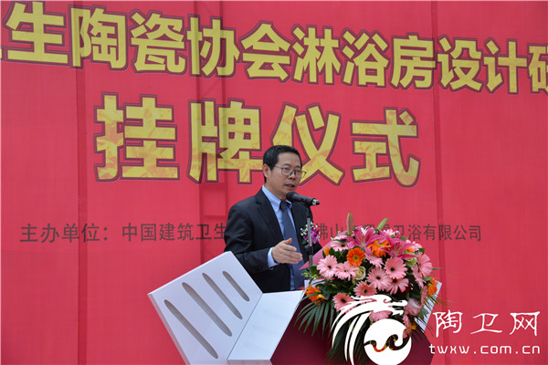 在正式揭牌仪式上,中国建筑卫生陶瓷协会秘书长吕琴宣读了《关于同意成立“中国建筑卫生陶瓷协会淋浴房设计研究中心”的决定》,与会领导嘉宾共同为“中国建筑卫生陶瓷协会淋浴房设计研究中心”进行了揭牌。