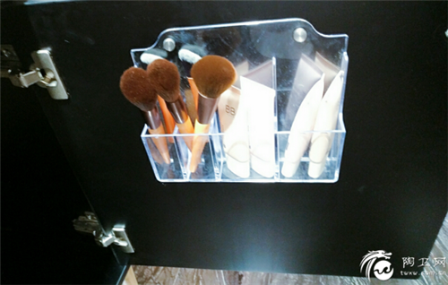 门板背面收纳盒的利用,可放笔刷,洗面奶等常用物品