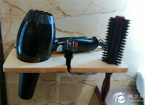 最头痛的吹风机收纳,安放在主柜靠墙处插头上方,使用方便且美观简洁