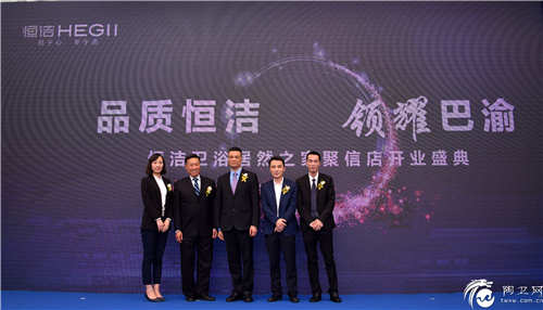 恒洁卫浴董事长谢伟藩、总裁郑灵光携恒洁公司高管,与重庆家居业领导、居然之家领导、恒洁卫浴重庆合作伙伴、重庆各大媒体记者到场致贺,共同见证以「品质恒洁 领耀巴渝」为主题的恒洁卫浴重庆居然之家聚信店开业庆典。