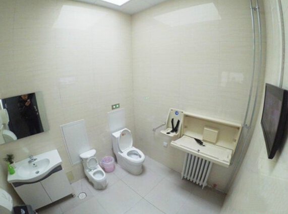 在知名景点蓬莱阁景区东票房附近的“第三卫生间”里,儿童安全座椅、安全扶手、可折叠多功能台等特殊设施一应俱全,这种家庭式卫生间让威海游客赞不绝口。