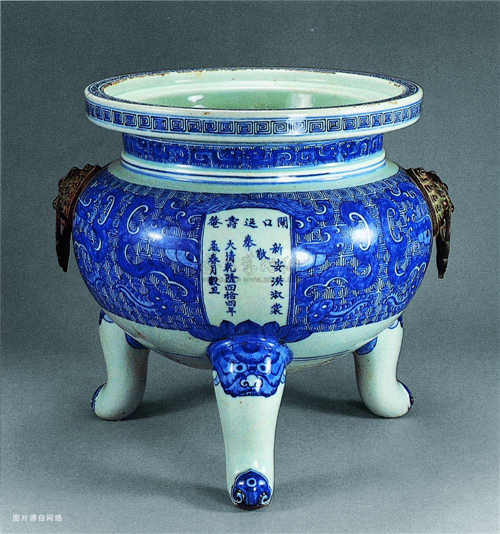 青花瓷兽面纹三足炉