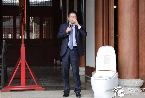 九牧厨卫董事长林孝发现场饮用九牧智能马桶水