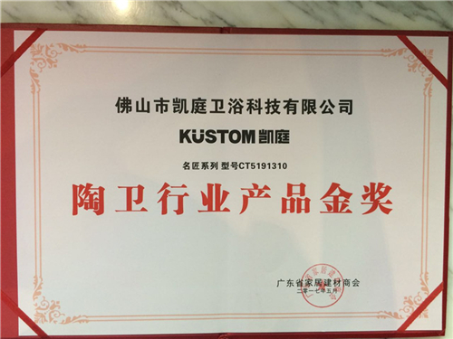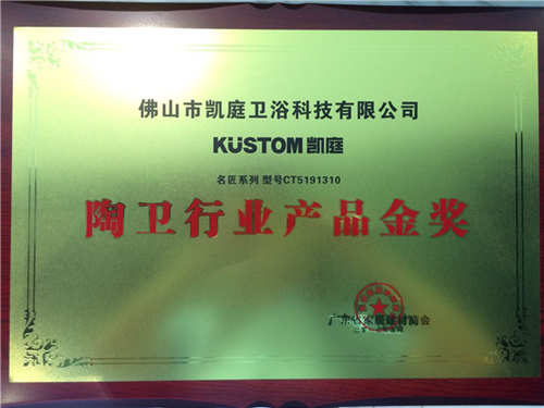 2017年5月31日,以“智能化装备引领陶业发展”为主题的第十二届国际陶瓷工业发展论坛在佛山陶瓷总部基地大剧院三楼举行。会上,行业各领域精英就“智能化”主题进行分享,并现场对表现优秀的企业给予颁奖。凯庭淋浴房名匠系列凭借崭新的设计理念以及优异的产品品质获得众多业内专家的肯定,斩获“陶卫行业产品金奖”。