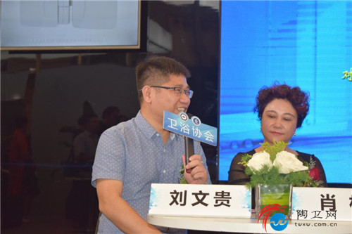 中国建材市场协会卫浴分会秘书长刘文贵先生介绍本次高峰对话目的是,请淋浴房行业大佬激情碰撞,引领行业发展。