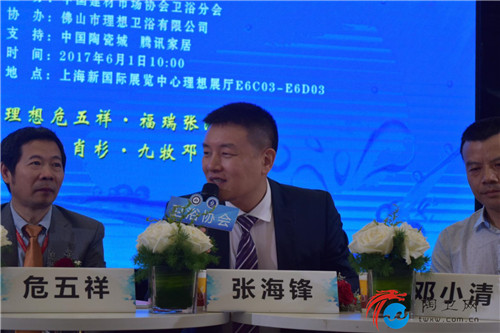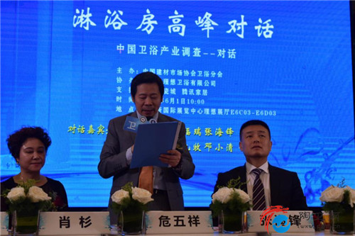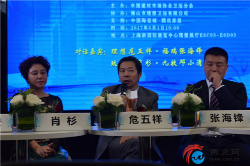 上海厨卫展作为中国乃至亚洲范围内规模最大、最具影响力的厨卫盛会之一,被誉为中国的“卫浴奥斯卡”。2017年6月1日上午10:00由中国建材市场协会卫浴分会主办,佛山市理想卫浴有限公司协办,中国陶瓷城、腾讯家居支持的《淋浴房高峰对话》在这届奥斯卡E6C03-E6D03佛山市理想卫浴展厅内隆重开启。中国建材市场协会卫浴分会秘书长刘文贵为嘉宾主持,理想卫浴危五祥先生,福瑞张海锋先生,玫瑰岛董事长肖杉女士,九牧邓小清先生4位嘉宾出席本次高峰对话。