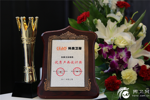 科奥卫浴传承皇室典雅风范,以欧式、美式、新中式等浴室柜风格为主,产品设计坚持原创路线,奢雅及简约相互融合。在此次展会上科奥卫浴的主打原创纯手工雕刻的浴室柜获得了由佛山市卫浴洁具行业协会设计专委会联合佛山市质量管理行业协会主办的“第三届上海厨卫将评选活动”组委会颁发的“2017优秀产品设计奖”。