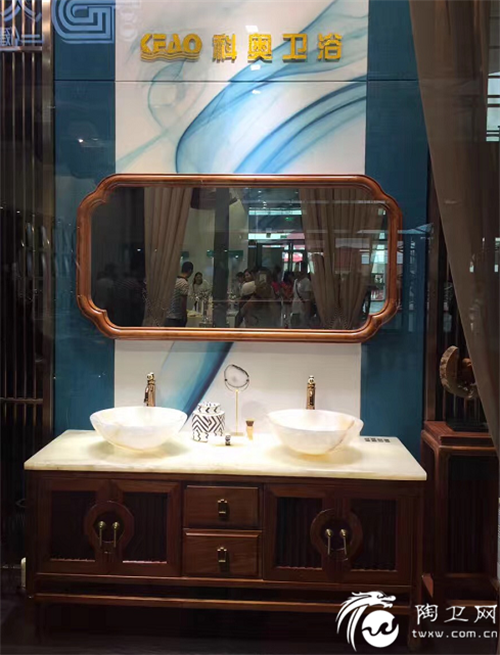 科奥本次推出的一款浴室柜亮点是精选的进口木材进行纯手工雕刻,产品表面以环保生态油漆以及使用纯天然大理石作为浴室柜洗手台,在龙头配件等使用纯铜无铅龙头。在产品的设计上可以看到浴室柜多以圆弧作为设计结构。 自古以来也有以“圆合”为美的心理习惯认为圆形有圆满、周全、和谐的含义,因为百家思想的逐渐兼容磨合,“中和思想”中“中和”之境也就是古人认为寓意好的“圆”境,是为“道”也。“中和”思想是抽象的圆,就是在讲文人的性格,同时在讲贵族向文人靠拢的方向,科奥浴室柜的最新产品设计也如国人一样诠释着对“圆”的特殊嗜好。在展会期间,这款又孕育着中国文化精髓的设计,简约而不失大雅,带有新中式之风的浴室柜展示在橱窗,让络绎不绝的观展者驻足观之称赞。