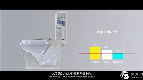 航标卫浴产品总监在接受媒体采访时介绍,此次上海厨卫展首发的这款W2061超节水新品,在刷新用水量极限的同时,航标卫浴从产品设计入手,采用目前先进的工艺,进一步强化坐便器的排污能力和冲刷效果。通过加大管径设计,超长污物传输管道,以及超强劲漩冲洗系统等技术升级,赋予了坐便器在同等水量前提下更强大的水流冲力。不需要二次冲水浪费,真正发挥每一滴水的最高效能。