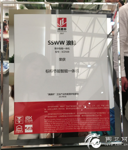 首届“沸腾杯”智能坐便器性能测评获奖产品颁奖仪式在上海厨卫展展位现场举行,浪鲸卫浴智能座便器斩获四项大奖。智能盖板(型号:ICO330)荣获"沸腾杯"标杆节能智能盖板、标杆舒适智能盖板;智能盖板(型号:ICO350)荣获"沸腾杯"标杆节能智能盖板;整体智能一体机(型号:ICO558)荣获"沸腾杯"标杆舒适智能一体机;整体智能一体机(型号:ICO568)荣获"沸腾杯"标杆舒适智能一体机、标杆节能智能一体机。
